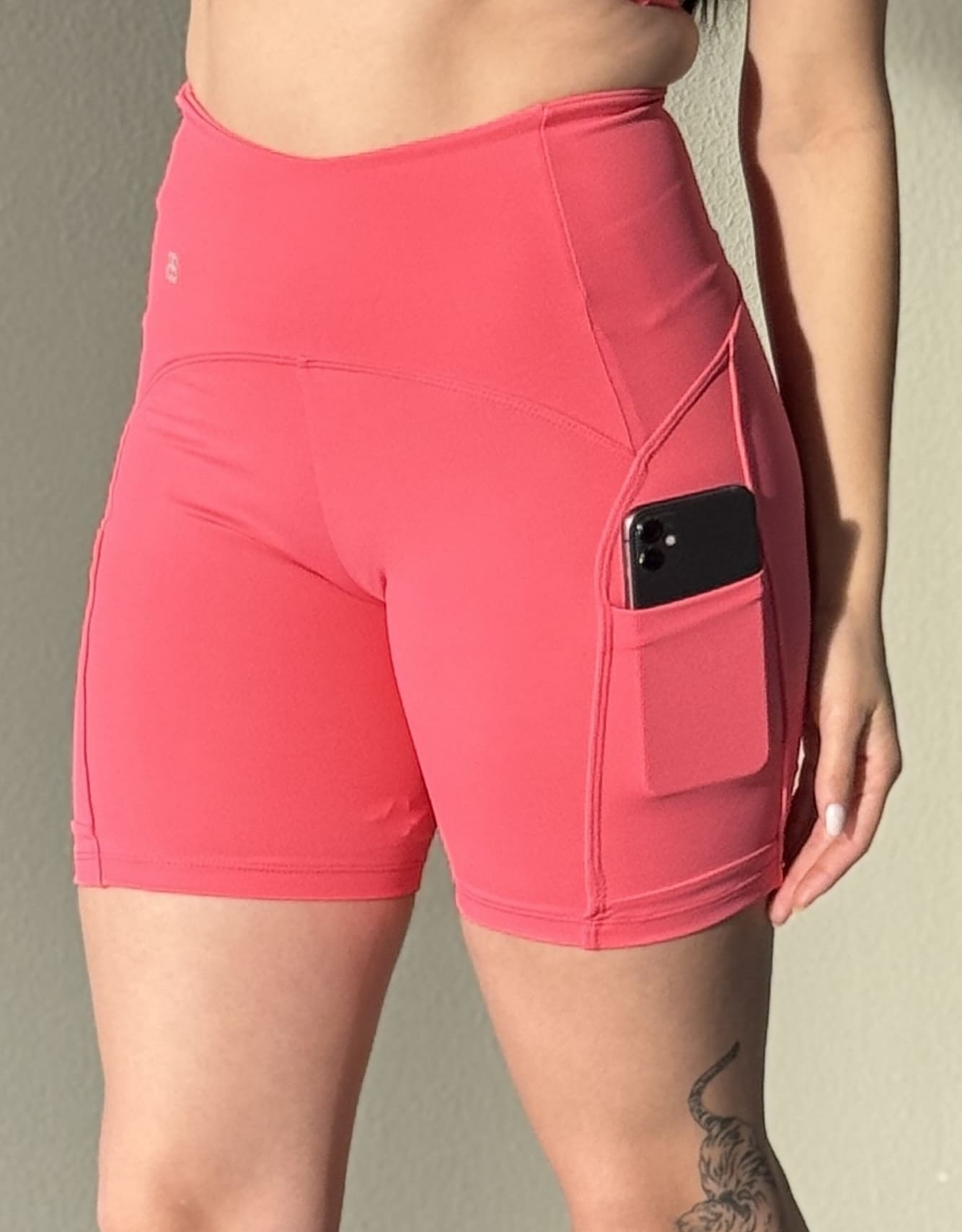 F365F - Short fitness cos alto com bolso lateral,forrado.